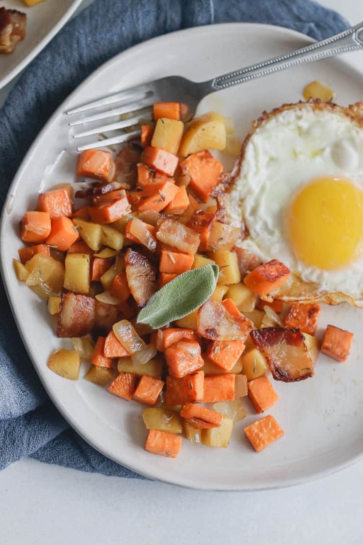 Discover a delightful one-pan breakfast or brunch option that combines savory bacon with sweet potatoes and apples for a balanced meal.